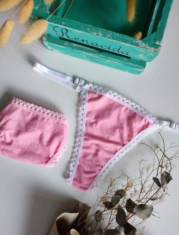 Tanga regulable en algodón con lycra o Morley, detalle de puntilla .